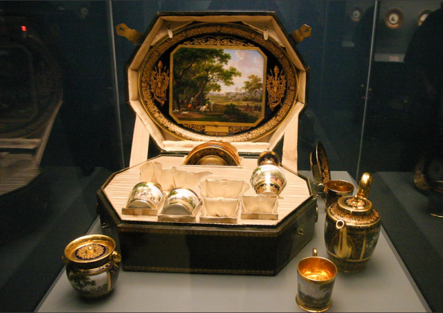 Diplomatie mit Porzellan: Diesen prunkvollen Koffer mit edlem Sèvres-Geschirr schenkte Napoleon 1814 seiner Schwester Caroline, der Königin von Neapel. Der Kaiser ordnete persönlich an, wer welche Stücke erhalten durfte.