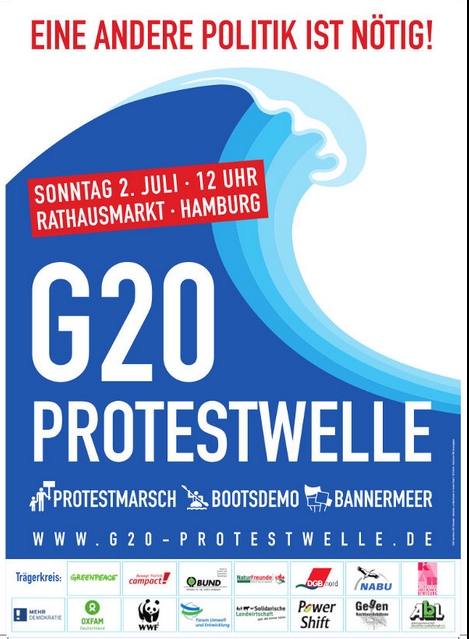 Weitere Informationen u.a. zum Trägerkreis und zum Aufruf findet Ihr auf der Website des Bündnisses: http://www.g20-protestwelle.de/.