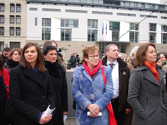 Zu den Redner/innen zählten neben der Braunschweiger SoVDBundesfrauensprecherin, Edda Schliepack, auch die parlamentarische Staatssekretärin Elke Ferner, die als Vertretung für Bundesministerin Schwesig, die vor wenigen Tagen ein Kind gebar, kam. Außerdem hielten Elke Hannack, DGB, und Hannelore Buls, Deutscher Frauenrat, kämpferische Reden. Von den Bundestagsfraktionen nahmen Karin Maag, Vorsitzende der Frauen in der CDU/CSU-Bundestagsfraktion, die SPD-Generalsekretärin Katarina Barlay, Sahra Wagenknecht, Fraktionschefin DIE LINKE und Katrin Göring-Eckardt, Vorsitzende der Fraktion Bündnis 90/Die Grünen, Stellung.