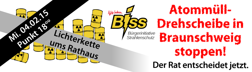 Die BISS organisiert am 4.2. eine Lichterkette um das Braunschweiger Rathaus, die den Protest von Menschen der Region gegen Erweiterungen der Atomfirmen in Braunschweig zeigen soll.