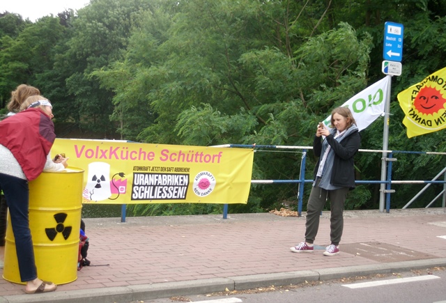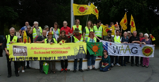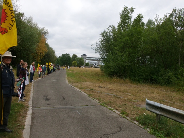 Natürlich war auch das Plakat vom "Weltatomerbe Braunschweiger Land" (Asse II, Morsleben, Schacht Konrad und Eckert &Ziegler) dabei. Noch steht die Kette nicht, aber sie stabilisiert sich.