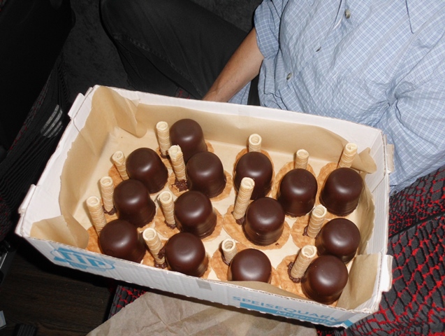 Zur Stärkung gab`s im Bus kleine "Atomkraftwerke" zum Vernaschen. Der Fantasie der Anti-AtomaktivistenInnen war keine Grenzen gesetzt. So etwas trägt letztendlich dazu bei, eine lange Busfahrt erträglich zu machen.