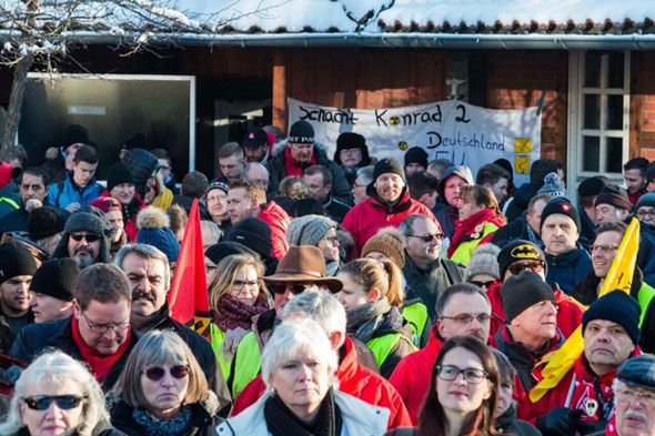 Bundesumweltministerin Hendricks hatte Ihren Besuch für den 19.01.16 in Salzgitter angekündigt. Die Stadt reservierte die große Aula in Fredenberg, aber so viel Öffentlichkeit wollte die Ministerin auch wieder nicht. Deshalb griff die Stadt, als höfliche Gastgeberin, auf die viel kleinere Kulturscheune zurück. In der, neben den Vertretern der Gebietskörperschaften, die den „Appell der Regionen“ unterzeichnet hatten und der Presse lediglich ein Zehntel der Bürger und Bürgerinnen der Region Platz hatten, die „Gesicht zeigen“ wollten. Die übrigen – fast tausend KONRAD- Kritiker – die bei klirrender Kälte vor der Kulturscheune quasi kaltgestellt wurden, konnten sich lediglich an Feuertonnen und Tee wärmen, wenn sie dem Verlauf Drinnen und der Übergabe des Appells auf einer kleinen Leinwand verfolgen wollten.