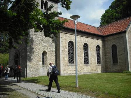 Endlich geht es dann weiter. Der Grüne Jäger ist in Sicht. Jetzt den Kleiderseller Weg lang, und man kann die Klostermauer anfassen.Wir sind am Ziel, die Klosterkirche in Riddagshausen. Einige Pilger waren bestimmt sehr glücklich das Ziel erreicht zu haben, aber niemand hat gejammert, obwohl es für Ungeübte eine Herausforderung war.