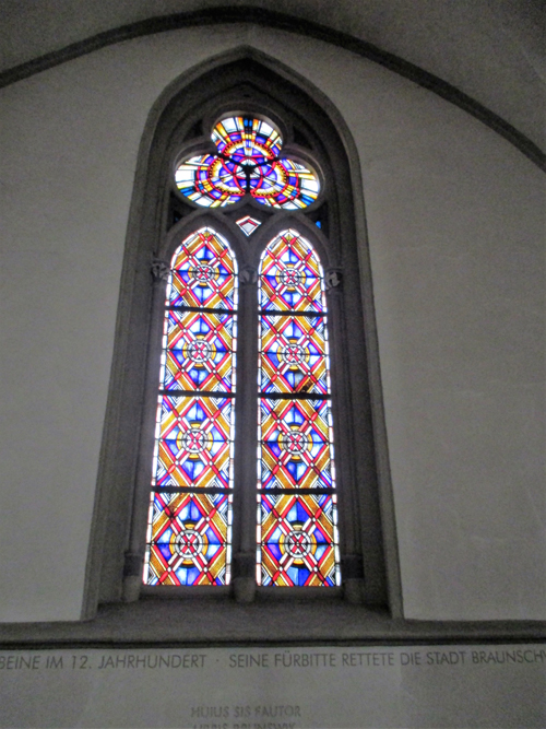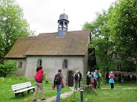 Es wurde durch Parkanlagen, vorbei an Gärten und durch Straßen gepilgert, immer der Jakobsmuschel folgend. Der erste Halt war dann die St. Leonhardskapelle, ein kleines Kirchlein aus dem 12. Jahrhundert, und das neben dem Dom den 2. Weltkrieg ohne größere Schäden überstanden hat. Die Kirche ist sehr einfach. Man ist dort weder evangelisch noch katholisch. Die Gläubigen  gehören zu einer Christengemeinschaft, in die man nicht hineingeboren wird, sondern für die man sich irgendwann entscheidet. Mancher würde wohl sagen es hat ein wenig mit spiritueller und esoterischer  Weltanschauung zu tun. Es ist schwer vorstellbar, dass es mal einen selbständigen Flecken St. Leonhard gab, der dann um 1860 langsam mit Braunschweig zusammenwuchs.