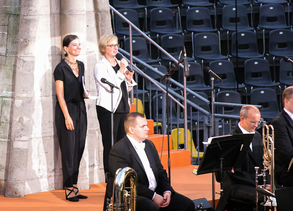 Operndirektorin Isabel Ostermann (links, gebürtige Braunschweigerin) und Generalintendantin Dagmar Schlingmann begrüßten das Publikum und führten durch das Programm. Foto: Klaus Knodt