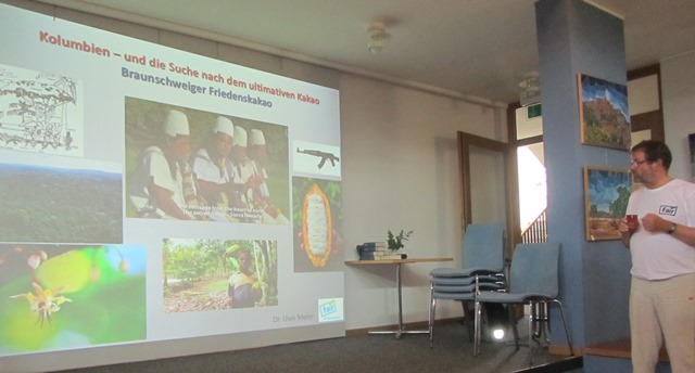 Vortrag von Uwe Meier (Fair in Braunschweig e.V.), der den ultimativen Kakao in Kolumbien bisher erfolglos suchte.