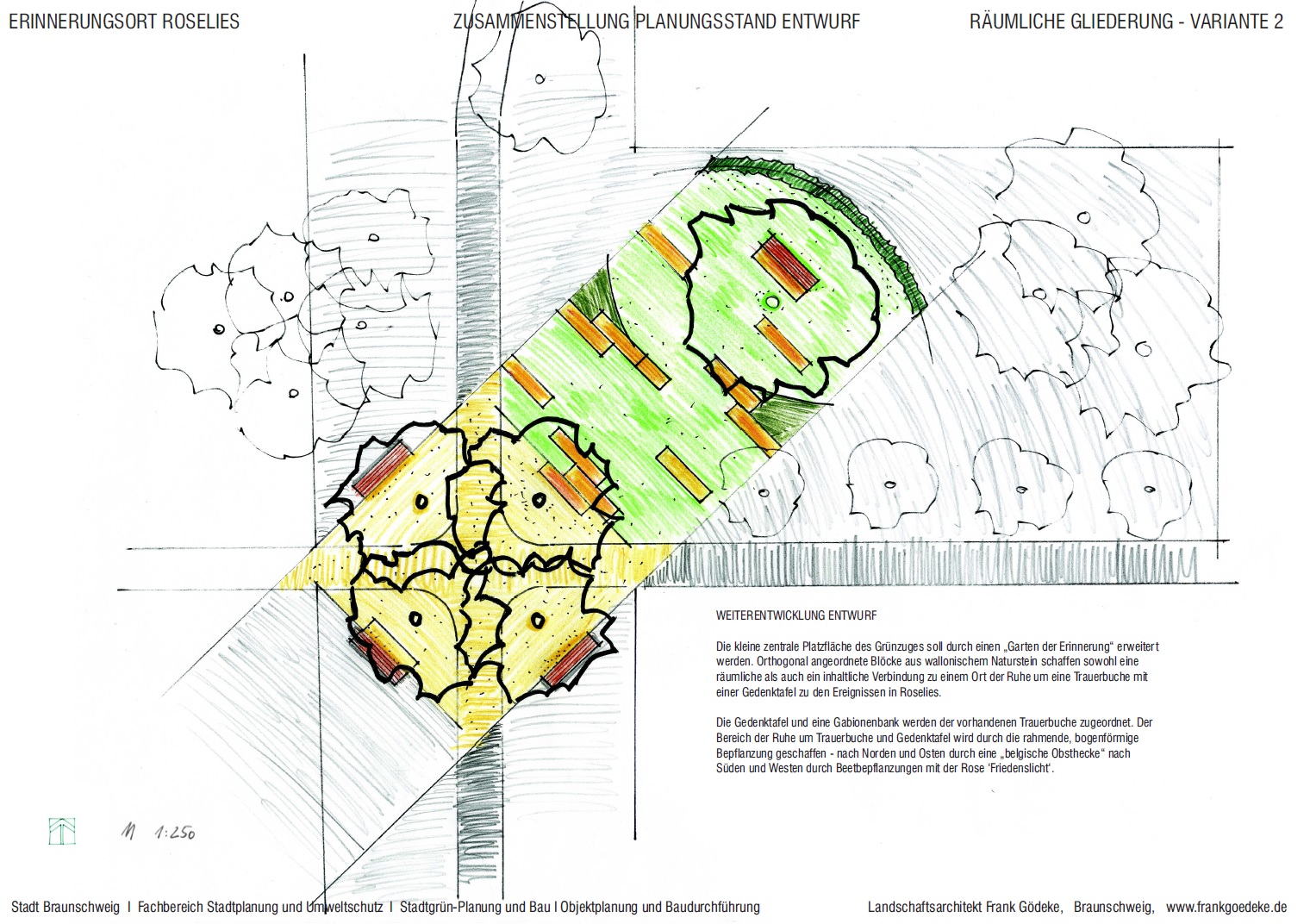Die BIBS-Fraktion ist sehr erfreut, dass die Erinnerungspartnerschaft zwischen der belgischen Kommune Aiseau-Presles und der Stadt Braunschweig an die Eroberung Belgiens im August 1914 und die dabei von den Deutschen Truppen begangenen Kriegsverbrechen mit einem Garten der Erinnerung in der Roselies-Siedlung zukunftsweisend friedvolle Früchte tragen soll. Der Ort für den Garten ist jedoch so gewählt, dass sich direkte Anwohner, die bei einer Ortswahl doch hätten beteiligt werden sollen, übergangen vorkommen. Die BIBS-Fraktion bemängelt daher vor allem das Verfahren der Ortsauswahl.