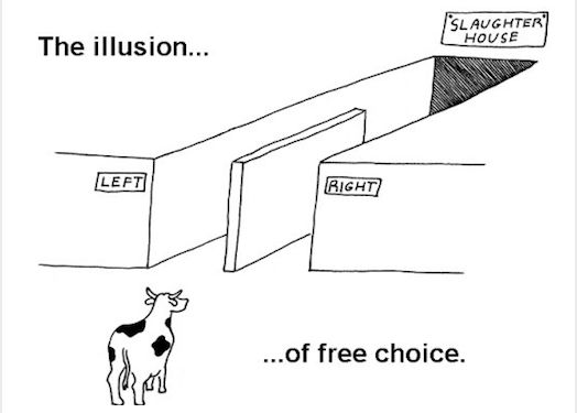 "Dieses Bild lässt sich letztlich ganz gut für die Rolle der unter Hälfte der Gesellschaft auf die politische Alternative zwischen den sog. beiden politischen „Lagern“ zwischen CDU und FDP bzw. SPD und Grüne beziehen." www.nachdenkseiten.de