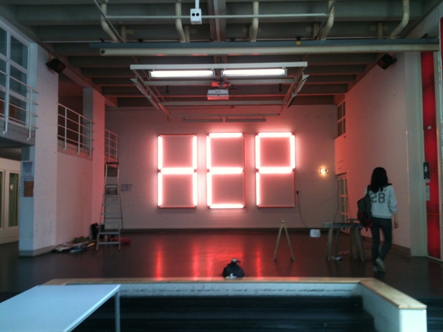 Im Mensafoyer der HBK, einem zentralen Punkt der Universität, leuchtet die Schrift wie ein Mahnmal und bietet sich an als Treff- und Diskussionspunkt für Studierende, Mitarbeiter und Besucher.
