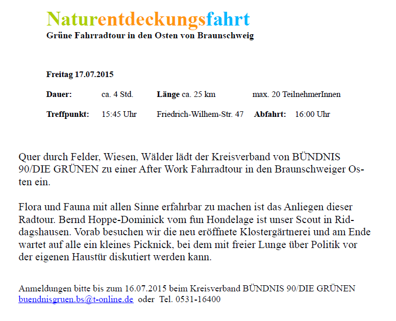 Grüne Radtour 'Naturentdeckungsfahrt'