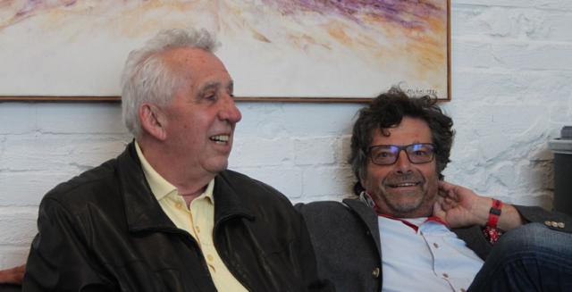 Egon Krenz und Diether Dehm entspannt auf dem Sofa der Vita_Mine. Foto Thorsten Stelzner